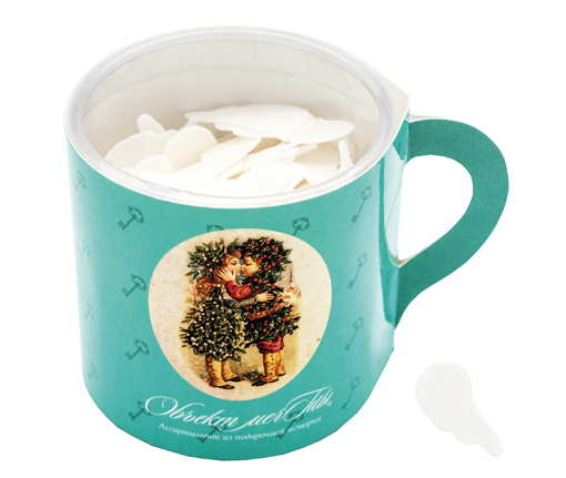 Мыло в форме крыльев ангела. Цвет – топленое молоко. Фантазийный цветочный аромат. Вес мыла – 22 г. Упаковка – пластиковая коробочка в форме кофейной чашечки диаметром 6 см, высотой 6 см. Вес мыла в коробочке – 32 г.